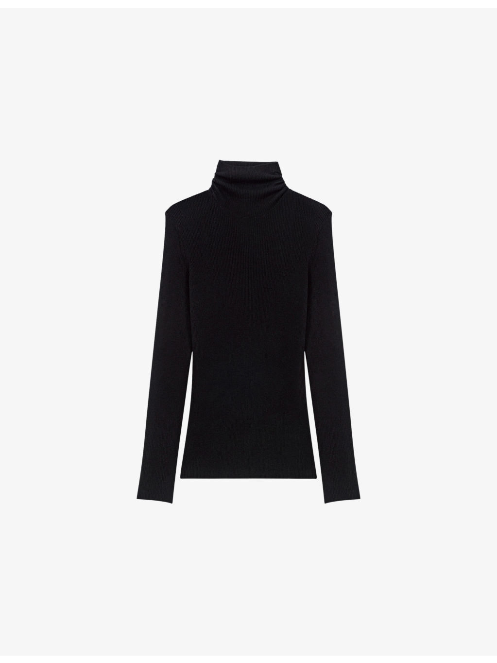 PRODUCT DETAILS - Maje wool and silk-blend jumper - 88% wool, 12% silk - Slim fit, round neck, long sleeves, signature clover tag at the back - Hand wash - True to size - Model is 5ft 11in/1.80m and wears a size UK 8 - Midweight, non-stretch Ref: R04514809
