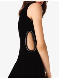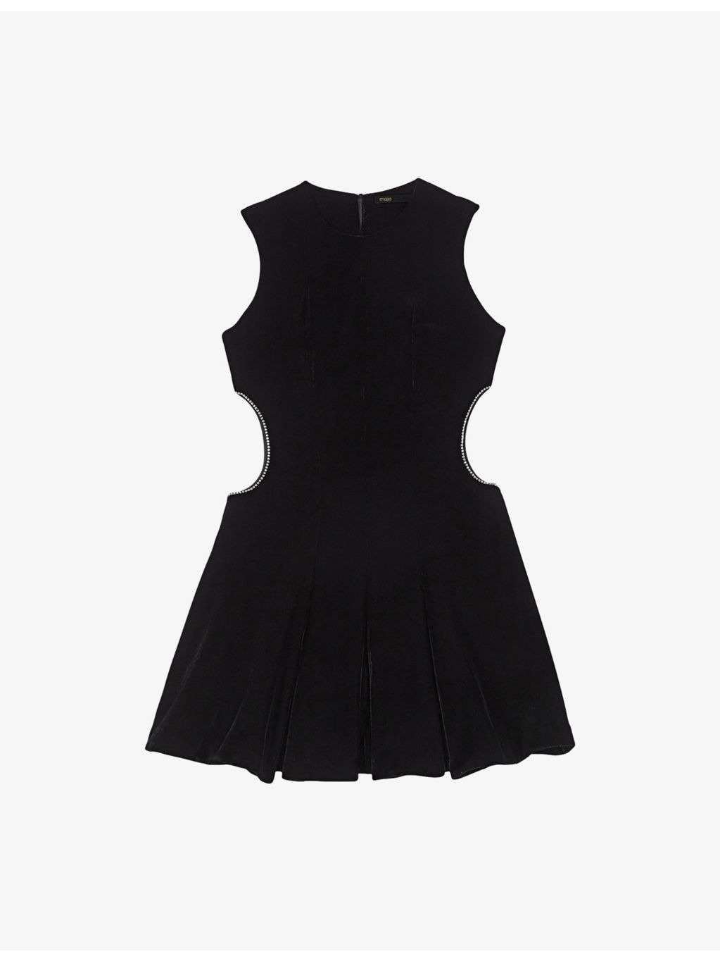 PRODUCT DETAILS - Maje velvet mini dress - 100% polyester - Zip fastening - Regular fit, round-neck, sleeveless, diamante-embellished cut-out details to sides - Hand wash - True to size - Model is 5ft 10in/1.78m and wears a size UK 8 - Lightweight, non-stretch Ref: R04548781