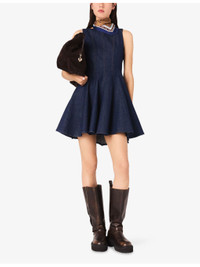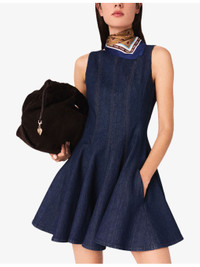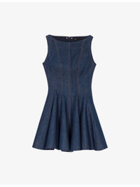 PRODUCT DETAILS - Maje stretch-denim dress - 99% cotton, 1% elastane - Concealed zip fastening - Regular fit, round neck, sleeveless, fitted waist, flared skirt, contrast stitching - Machine wash at 30°C - True to size - Model is 5ft 10in/1.78m and wears a size UK 8 - Midweight, slight stretch Ref: R04514827