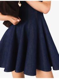 Round-Neck Flared-Skirt Stretch-Denim Mini Dress