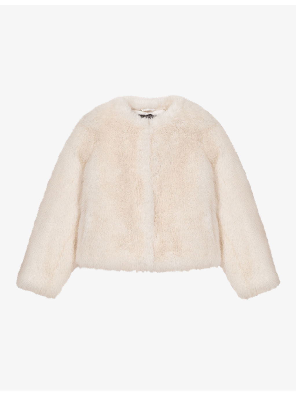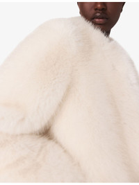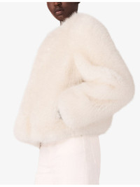 PRODUCT DETAILS - Maje faux-fur jacket - 100% polyester - Concealed hook-and-eye and zip fastening at back - Regular fit, round neck, long sleeves, two pockets at the side - Machine wash at 30°C - True to size - Model is 5ft 10in/1.78m and wears a size UK 8 - Midweight, non-stretch Ref: R04532852