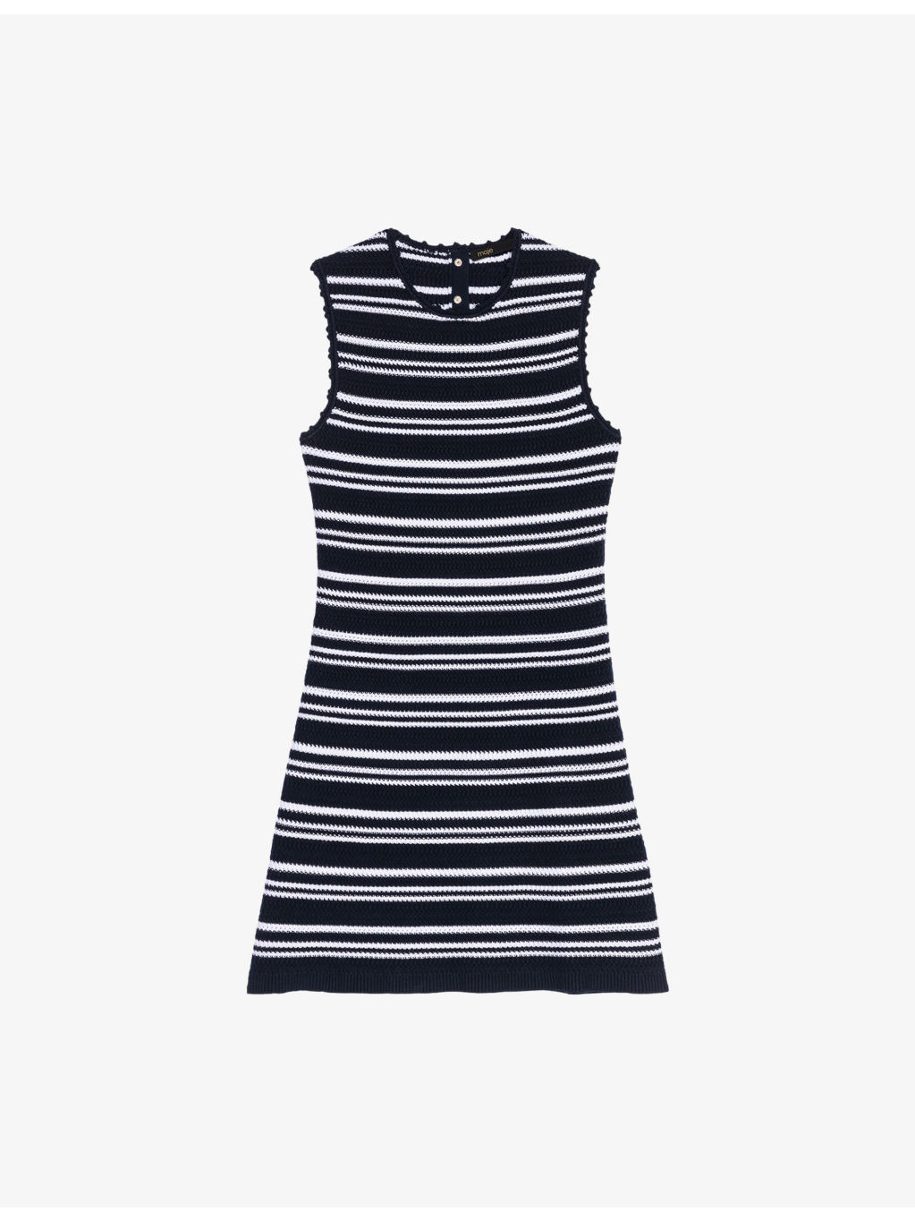 PRODUCT DETAILS - Maje crochet dress - 70% viscose, 30% polyester - Slips on - Slim fit, round neck, sleeveless, all-over stripe design, crochet finish - Hand wash - True to size - Model is 5ft 10in/1.78m and wears a size UK 8 - Lightweight, non-stretch Ref: R04491724
