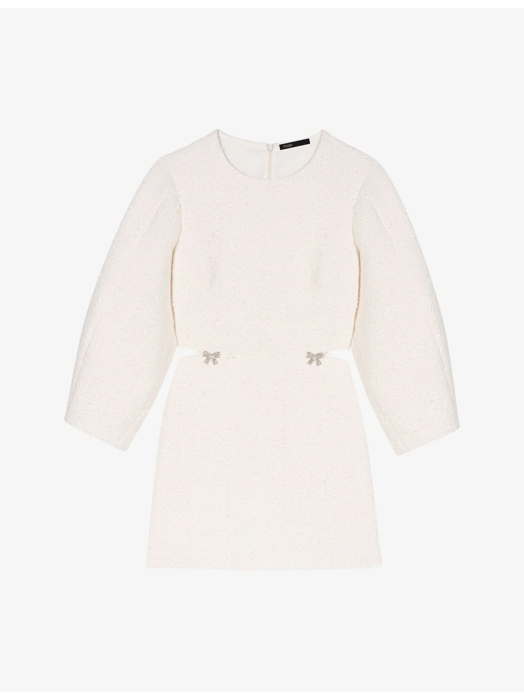 PRODUCT DETAILS - Maje tweed dress - 52% cotton, 22% polyester, 11% viscose, 10% acrylic, 5% polyamide - Concealed zip fastening at back - Slim fit, round neck, balloon sleeves, cut-out detail at the side - Dry clean - True to size - Midweight, non-stretch Ref: R04578826