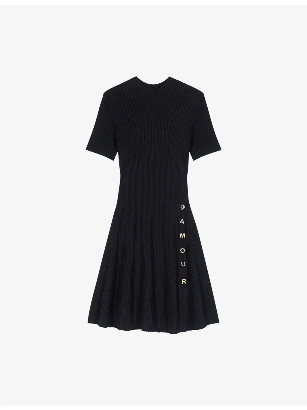 PRODUCT DETAILS - Maje stretch-knit dress - 57% viscose, 42% polyamide, 1% elastane - Slim fit, high neck, short sleeves, 'amour' button detail at the side - Hand wash - True to size - Midweight, slight stretch Ref: R04578851