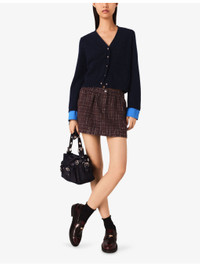 PRODUCT DETAILS - Maje wool cardigan - 100% wool - Exposed button fastening at front - Slim fit, removable shirt collar and panels, short length, button-down design - Hand wash - True to size - Model is 5ft 11in/1.80m and wears a size UK 8 - Midweight, non-stretch Ref: R04532851