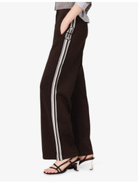 PRODUCT DETAILS - Maje stretch-jersey trousers - 89% polyester,11% elastane - Regular fit, elasticated drawstring waist, stripe detail and two pockets at the side, straight leg - Machine wash at 30°C - True to size - Model is 5ft 10in/1.78m and wears a size UK 8 - Midweight, slight stretch Ref: R04549663