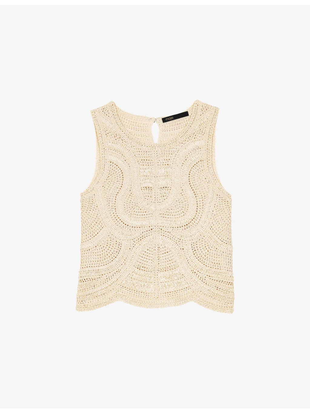 PRODUCT DETAILS - Maje woven top - 100% polyester - Boxy fit, round neck, sleeveless, all-over crochet pattern - Hand wash - True to size - Model is 5ft 9in/1.75m and wears a size UK 8 - Midweight, non-stretch Ref: R04606247
