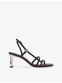 PRODUCT DETAILS - Maje leather heeled sandals - 100% leather - Buckle fastening - Open square toe, multiple straps, metallic heel - Heel height 2"" - Specialist leather clean - Upper: 100% leather - Lining: 100% leather - Sole: 100% synthetic Ref: R04490909