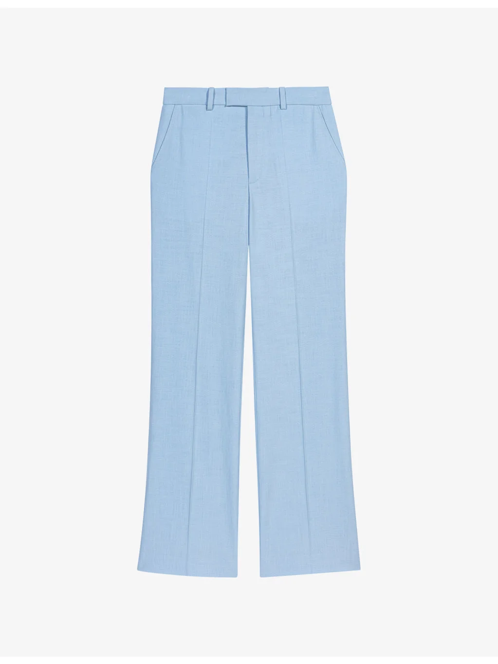 PRODUCT DETAILS - Maje woven trousers - 99% viscose, 1% elastane - Button and zip-fly fastening - Regular fit, mid-rise, flared straight leg, belt loops, side pockets, back pockets, front pleats - Dry clean - True to size - Model is 5ft 9in/1.75m and wears a size UK 8 - Lightweight, non-stretch Ref: R04606215