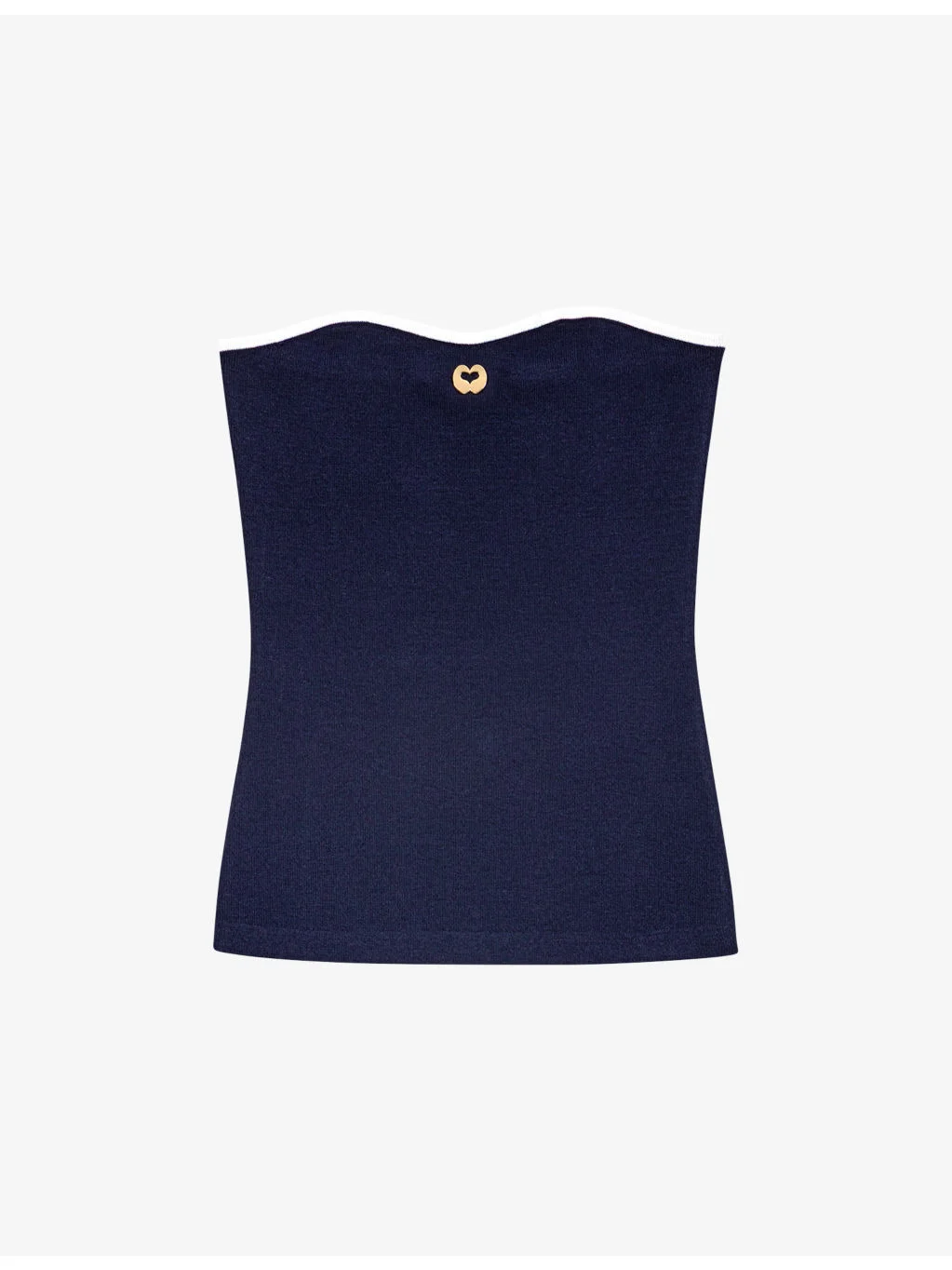 PRODUCT DETAILS - Maje stretch-knit top - 55% viscose, 43% polyamide, 2% elastane - Slim fit, strapless, logo embellishment at the front, sleeveless - Hand wash - True to size - Model is 5ft 9in/1.75m and wears a size UK 8 - Midweight, slight stretch Ref: R04606203