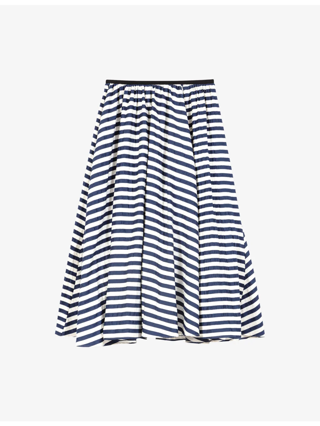 PRODUCT DETAILS - Maje woven midi skirt - 33% polyester, 32% cotton, 24% linen, 11% polyamide - Regular fit, elasticated waist, side pockets, all-over striped pattern, crinkled texture - Hand wash - True to size - Model is 5ft 9in/1.75m and wears a size UK 8 - Lightweight, non-stretch Ref: R04606230