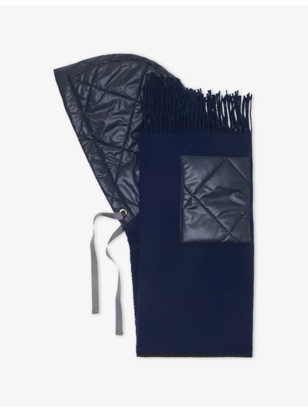 Tie-neck wool and shell hooded poncho