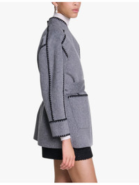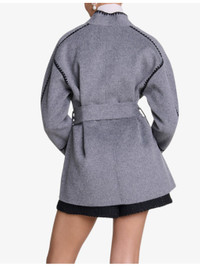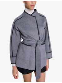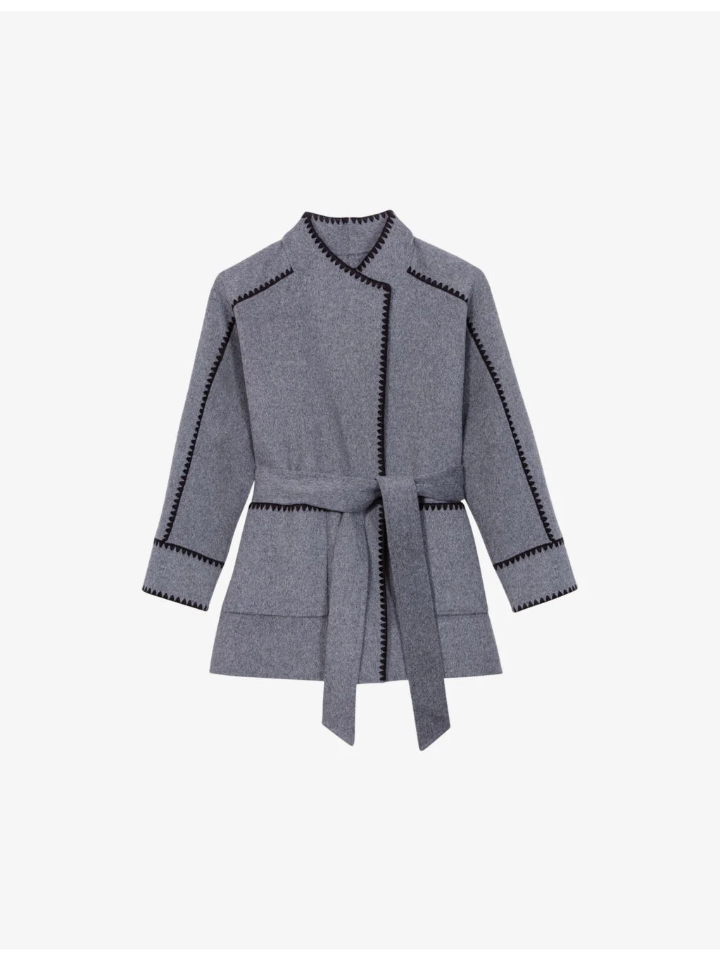 PRODUCT DETAILS - Maje wool-blend coat - 78% wool, 22% polyamide - Self-tie fastening - Relaxed fit, wrap neck, contrast stitching, long sleeves, belted at the waist, two patch pockets at the side, double-face design - Dry clean - True to size - Model is 5ft 10in/1.78m and wears a size UK 8 - Midweight, non-stretch Ref: R04333741