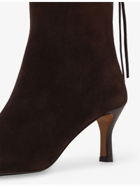 PRODUCT DETAILS - Maje suede boots - 100% suede - Pointed closed toe, small kitten heel, clover charm embellishment - Heel height: 2.95” - Specialist leather clean - Upper: 100% leather - Lining: 85% leather - Sole: 100% synthetic Ref: R04514816