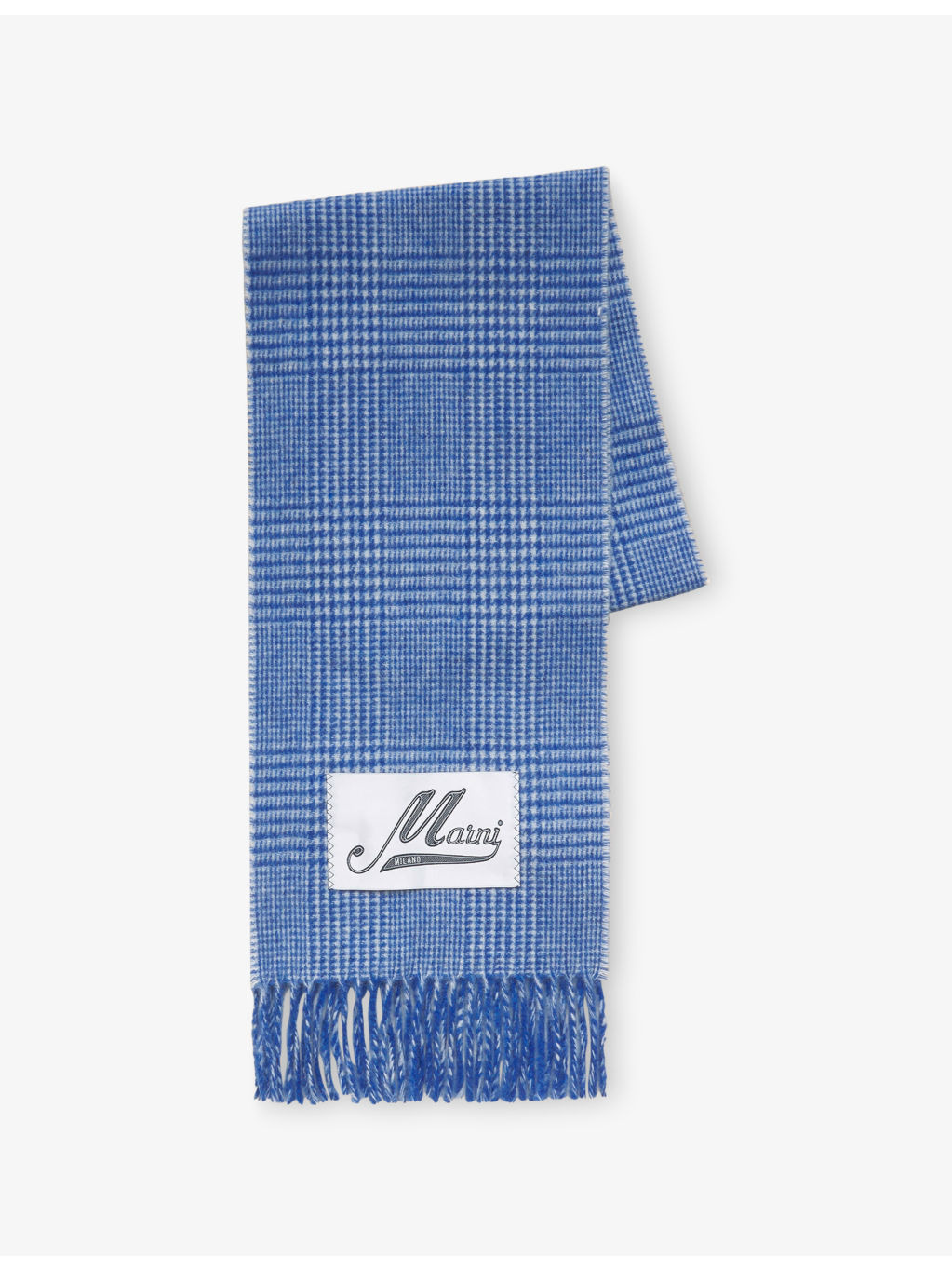 PRODUCT DETAILS - Marni wool-blend scarf - 80% wool, 20% polyamide - Rectangle shape, Prince of Wales checked pattern, oversized brand patch at front, double faced, fringed ends - Length 220cm, width 35cm - Dry clean only - Made in Italy - Midweight, non-stretch Ref: R04482086