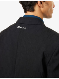 PRODUCT DETAILS - MARNI wool jacket - 100% virgin wool; lining 100% viscose - Exposed button fastening at front - Relaxed fit, single-breasted, notch lapels, padded shoulders, long sleeves, buttoned cuffs, welt pocket and two flap pockets at front, brand embroidery at back, all-over tonal geometric jacquard pattern, satin piping, fully lined, single vent - Dry clean - Made in Italy - Size UK 40: length 31in / 79cm, chest 44in / 112cm - Model is 6ft 2in/1.88m and wears a size UK 40 - Lightweight, stretchy Ref: R04565027