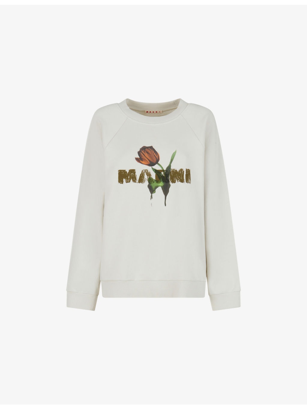 OFF-WHITE COTTON SWEATSHIRT WITH TULIP PRINT
