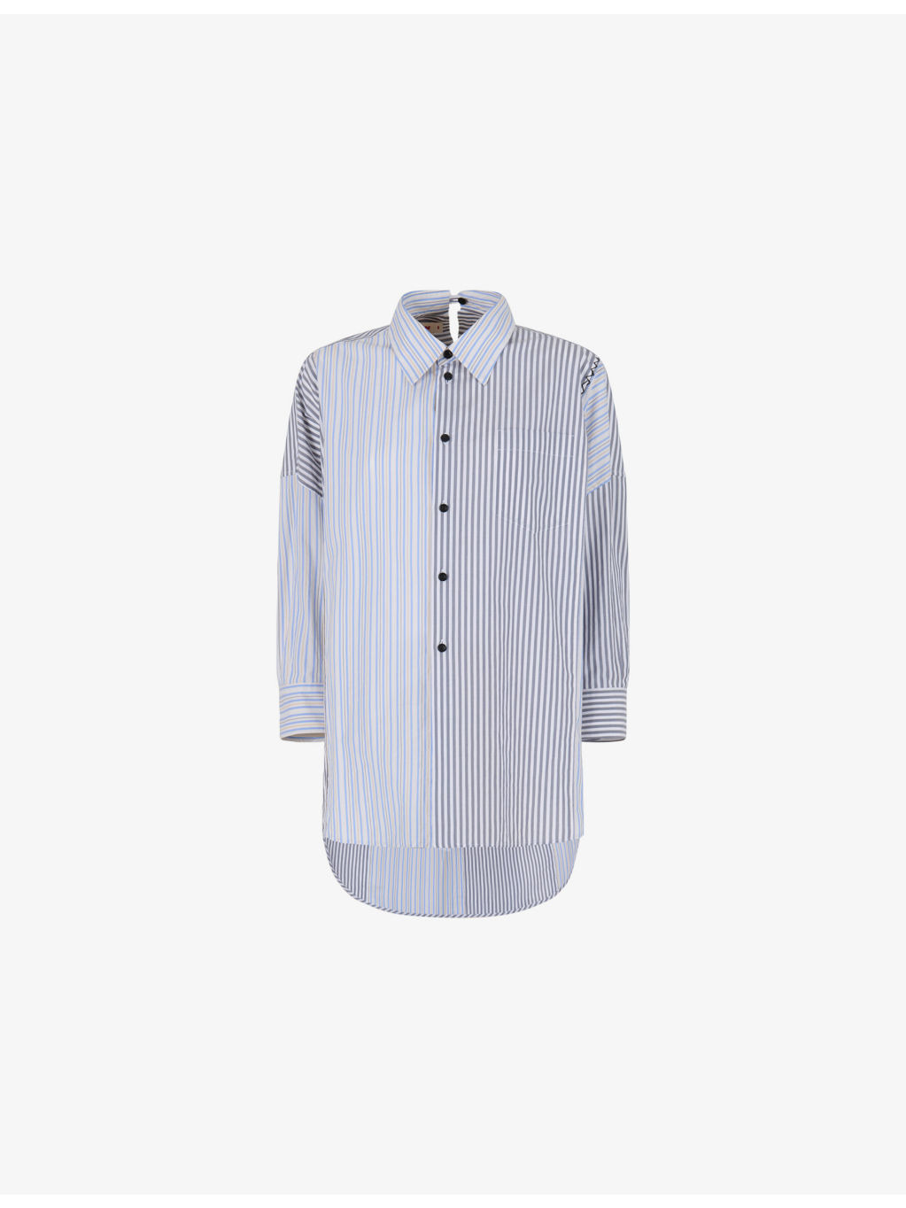 GRAY STRIPED ORGANIC POPLIN PATCHWORK SHIRT