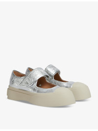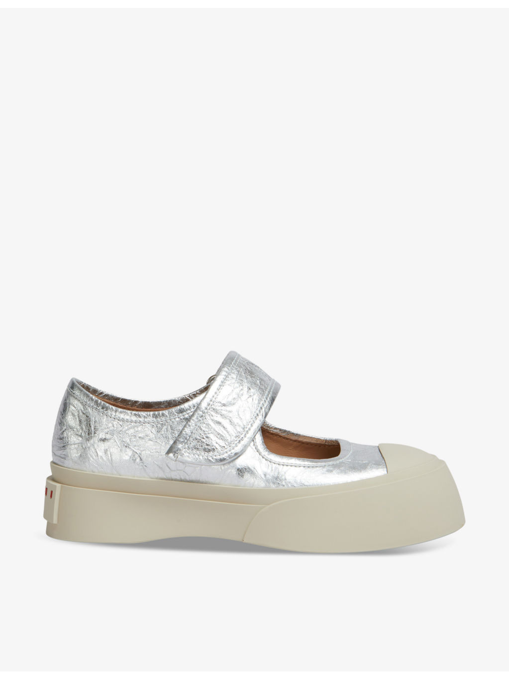 PRODUCT DETAILS - Marni metallic-leather Mary Jane trainers - 100% metallic leather - Hook-and-loop tape fastening - Round toe, closed toe, all-over metallic effect, contrasting toe cap, top strap, chunky sole, silver-tone hardware, branded insole - Specialist leather clean - Upper: 100% metallic leather - Lining: 100% leather - Sole: 100% rubber Ref: R04303969