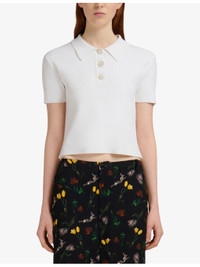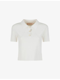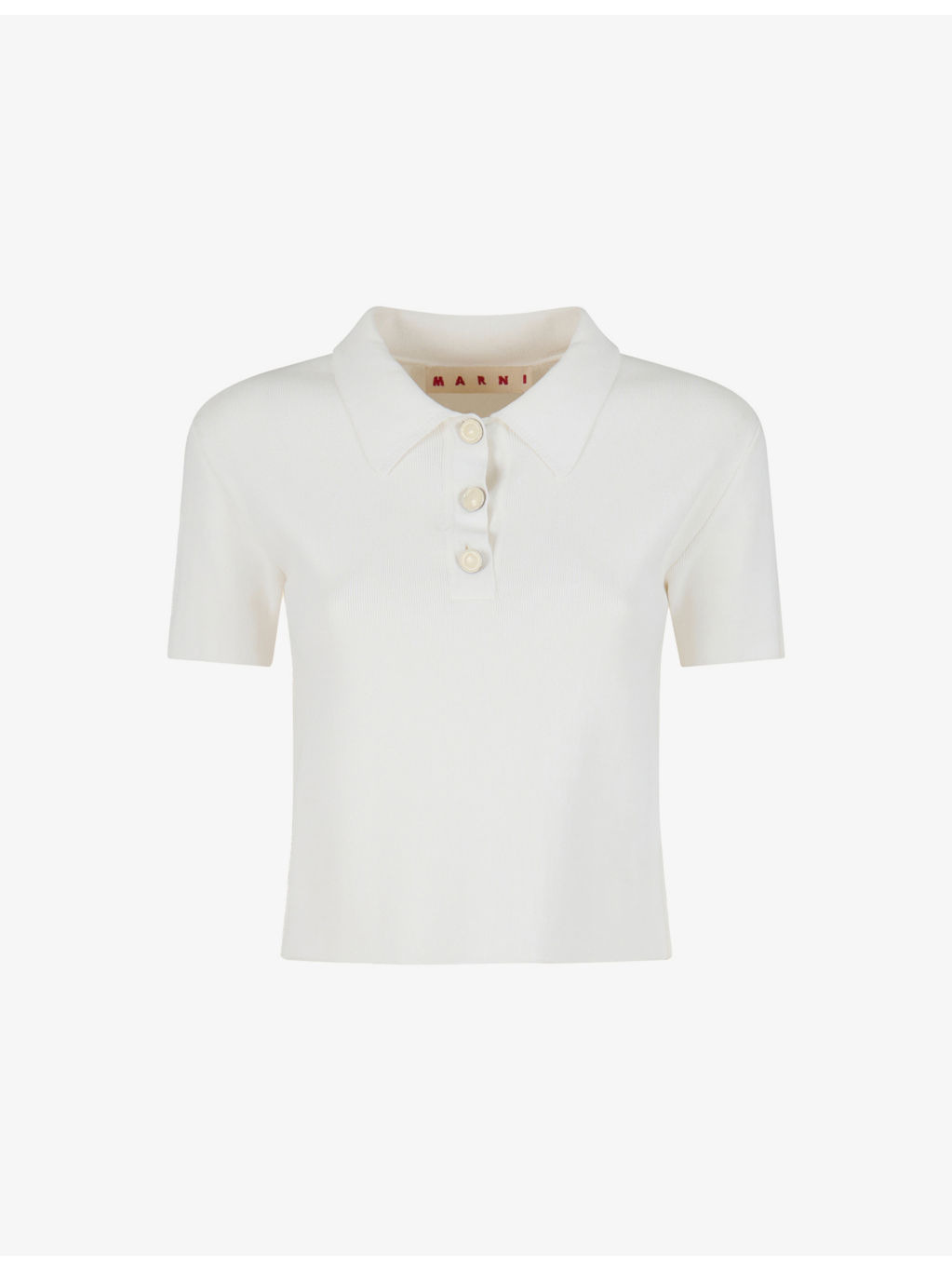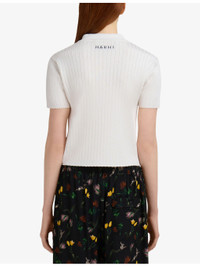 PRODUCT DETAILS - Marni knitted polo shirt - 80% viscose, 20% rayon - Button fastening - Regular fit, collar, short sleeves, branded intarsia to back, all-over ribbed texture - Hand wash - True to size - Lightweight, slight stretch Ref: R04482143