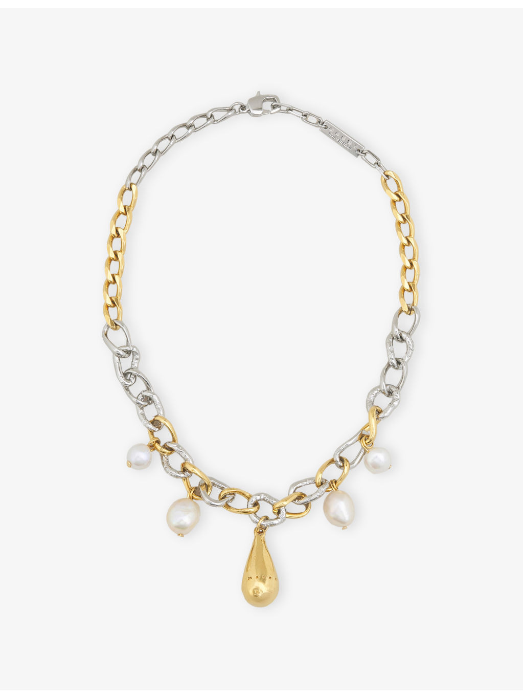 PRODUCT DETAILS - Marni brass necklace - 100% brass - Concealed-clasp fastening - Chunky chain, droplet pearls, logo-shaped detail set with crystals, two tone metals - Please use a soft, dry polishing cloth - Made in Italy Ref: R04482160