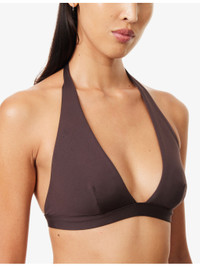 PRODUCT DETAILS - Max Mara bikini top - 90% polyamide, 10% elastane - Self-tie fastenings at back - Halterneck, triangle shape, logo plaque at strap - Hand wash - True to size - Model is 5ft 10in/1.78m and wears a size IIB - Lightweight, stretchy Ref: R04421984