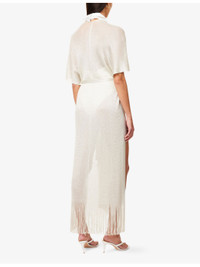 PRODUCT DETAILS - Max Mara knitted vest - 80% viscose, 10% metallic fibres, 10% polyamide - Relaxed fit, cap sleeves, split at sides, all-over metallic weave, all-over knitted, fringed hem - Dry clean - True to size - Model is 5ft 10in / 1.78m and wears one size - Lightweight, stretchy Ref: R04421974