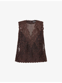 PRODUCT DETAILS - ME+EM lace top - 100% Polyester - Concealed zip fastening at back - Regular fit, round neck, sleeveless, scalloped trims, removable lining - Hand wash - True to size - Size UK 8: length 19in / 49cm - Model is 5ft 10in/1.78m and wears a size UK 8 - Lightweight, non-stretch Ref: R04611605