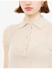 Short-Sleeve Polo-Collar Wool Cashmere and Silk Top