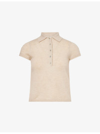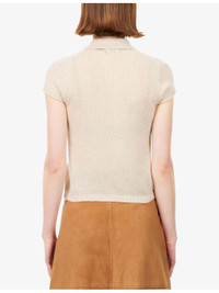 PRODUCT DETAILS - ME + EM wool cashmere and silk top - 54% merino wool, 23% cashmere, 23% silk - Exposed button fastening at front - Polo collar, exposed buttons at front, short cap sleeves, knitted, ribbed trims - Dry clean - True to size - Model is 5ft 10in/1.78m and wears a size small - Lightweight, stretchy Ref: R04611555