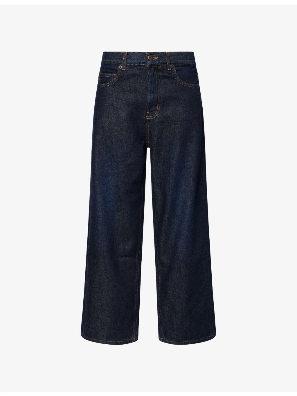 PRODUCT DETAILS - ME + EM denim jeans - 100% cotton - Button and zip-fly fastening - Relaxed fit, mid-rise, straight cropped leg, structured waistband with belt loops, five pockets, indigo wash, contrast stitching, branded hardware - Machine wash cold - Made in Turkey - True to size - Size 27: rise 12.5in / 32cm, inside leg 26in / 66cm, leg opening 19in / 48cm - Model is 5ft 10in/1.78m and wears a size 26 - Midweight, non-stretch Ref: R04574888