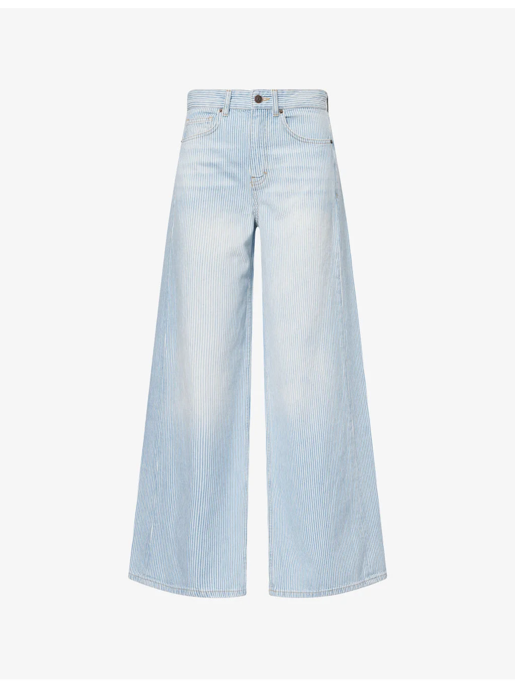 PRODUCT DETAILS - ME + EM denim jeans - 100% cotton - Button and zip-fly fastening - Regular fit, wide leg, high-rise, belt loops, five pockets, all-over pinstripe print, branded hardware - Machine wash at 30°C - Made in Turkey - True to size - Size UK 26: rise12in / 30.5cm, inside leg 32in / 81.5cm, leg opening 26in / 66cm - Model is 5ft 10in/1.78m and wears a size 26 - Midweight, non-stretch Ref: R04611519