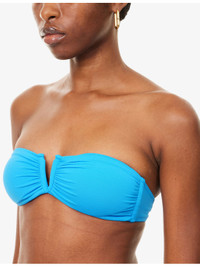 PRODUCT DETAILS - Melissa Odabash bikini top - 86% polyamide, 14% elastane - Clasp fastening - Bandeau shape, V-neckline, removable pads, ruching at bust, centre V trim, SPF 50+ protection - Hand wash - True to size - Model is 5ft 10in/1.78m and wears a size UK 8 - Lightweight, slight stretch Ref: R04557282