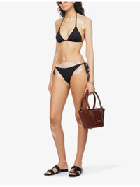 PRODUCT DETAILS - Melissa Odabash bikini top - 86% polyamide, 14% elastane - Self-tie fastenings - Halter-neck, soft-triangle cups, detachable padding, gold-toned hardware, link embellishments at straps, lined - Hand wash cold - Made in Italy - True to size - Model is 5ft 9in/1.75m and wears a size UK 8 - Lightweight, stretchy
