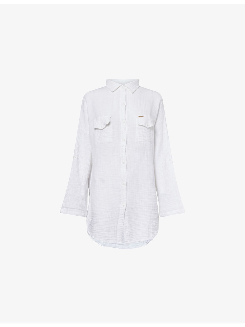 PRODUCT DETAILS - Melissa Odabash cotton shirt - 100% cotton - Button fastening - Relaxed fit, collar, three-quarter sleeves, flap pockets at chest, crinkle texture - Hand wash - True to size - Model is 5ft 10in/1.78m and wears a size small - Lightweight, non-stretch Ref: R04453247