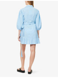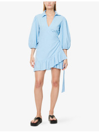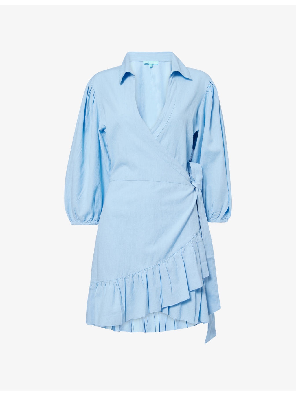 PRODUCT DETAILS - Melissa Odabash cotton-linen mini dress - 80% cotton, 20% linen - Self-tie fastening - Regular fit, collar, V-neckline, long puff sleeves, elasticated sleeve hems, wrap-over self-tie, pleated trim - Hand wash - True to size - Model is 5ft 10in/1.78m and wears a size small - Lightweight, non-stretch Ref: R04453257