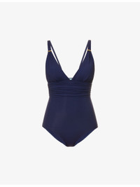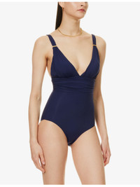 PRODUCT DETAILS - Melissa Odabash swimsuit - 86% polyamide, 14% elastane - Slips on - Adjustable straps, plunging neckline, triangle cups, detachable padding, gathered at chest, gold-toned hardware, high leg, medium coverage at back, fully lined - Hand wash cold - Made in Italy - True to size - Model is 5ft 9in/1.75m and wears a size UK 8 - Lightweight, stretchy