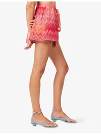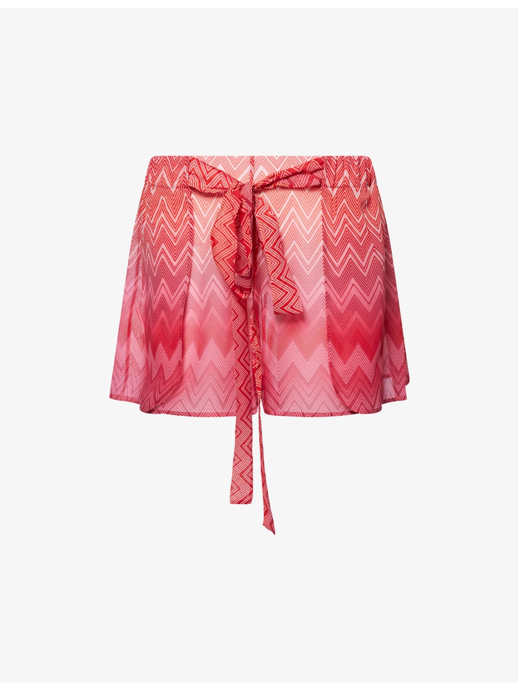 PRODUCT DETAILS - Missoni silk shorts - 100% silk - Regular fit, high-rise, elasticated waistband, self-tie fastening at front, all-over chevron print, all-over satin texture, split at sides - Dry clean - Made in Italy - True to size - Model is 5ft 10in/1.78m and wears a size UK 8 - Lightweight, stretchy Ref: R04403687