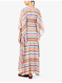 PRODUCT DETAILS - Missoni knitted kaftan - 83% rayon, 17% elastane - Relaxed fit, V-neckline, short sleeves, chevron knit pattern, metallic thread weave - Hand wash - Made in Italy - True to size - Model is 5ft 10in/1.78m and wears a size small - Lightweight, stretchy Ref: R04566515