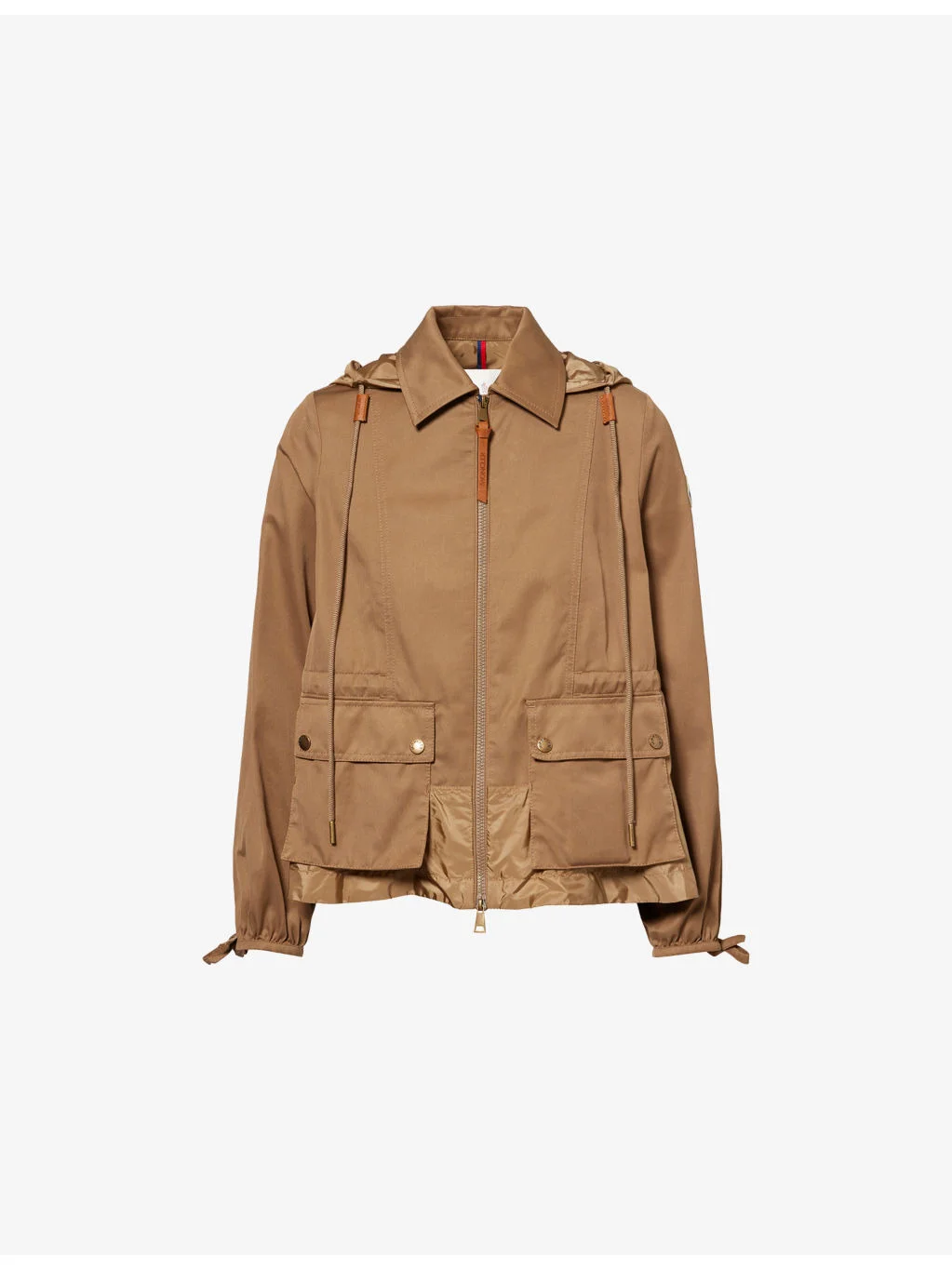 PRODUCT DETAILS - Moncler shell-panelled jacket - 68% polyester, 32% cotton - Zip fastening - Relaxed boxy fit, classic collar, detachable drawstring hood, long sleeves, self-tie cuffs, popper-fastened flap pockets at front, drawstring waistband, shell-panelled hem, two way zip, unlined - Machine wash at 30°C - True to size - Size small: length 24in / 61cm - Model is 5ft 10in/1.78m and wears a size small - Midweight, non-stretch Ref: R04593459