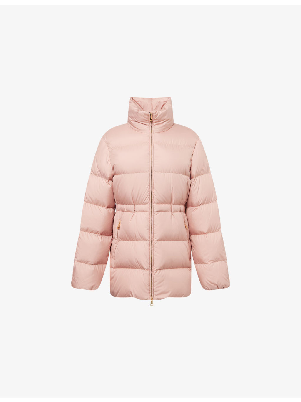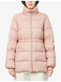 PRODUCT DETAILS - Moncler shell-down jacket - 100% polyester; filling 90% goose down, 10% feathers; lining 100% polyester - Concealed zip fastening at front - Slim fit, high-neck, detachable, long sleeves, brand patch at sleeve, elasticated cuffs, two zip pockets at front, elasticated waistband, all-over quilted and padded, fully lined - Machine wash at 30°C - True to size - Size small: length 27in / 69cm - Model is 5ft 10in/1.78m and wears a size small - Lightweight, slight stretch Ref: R04487496