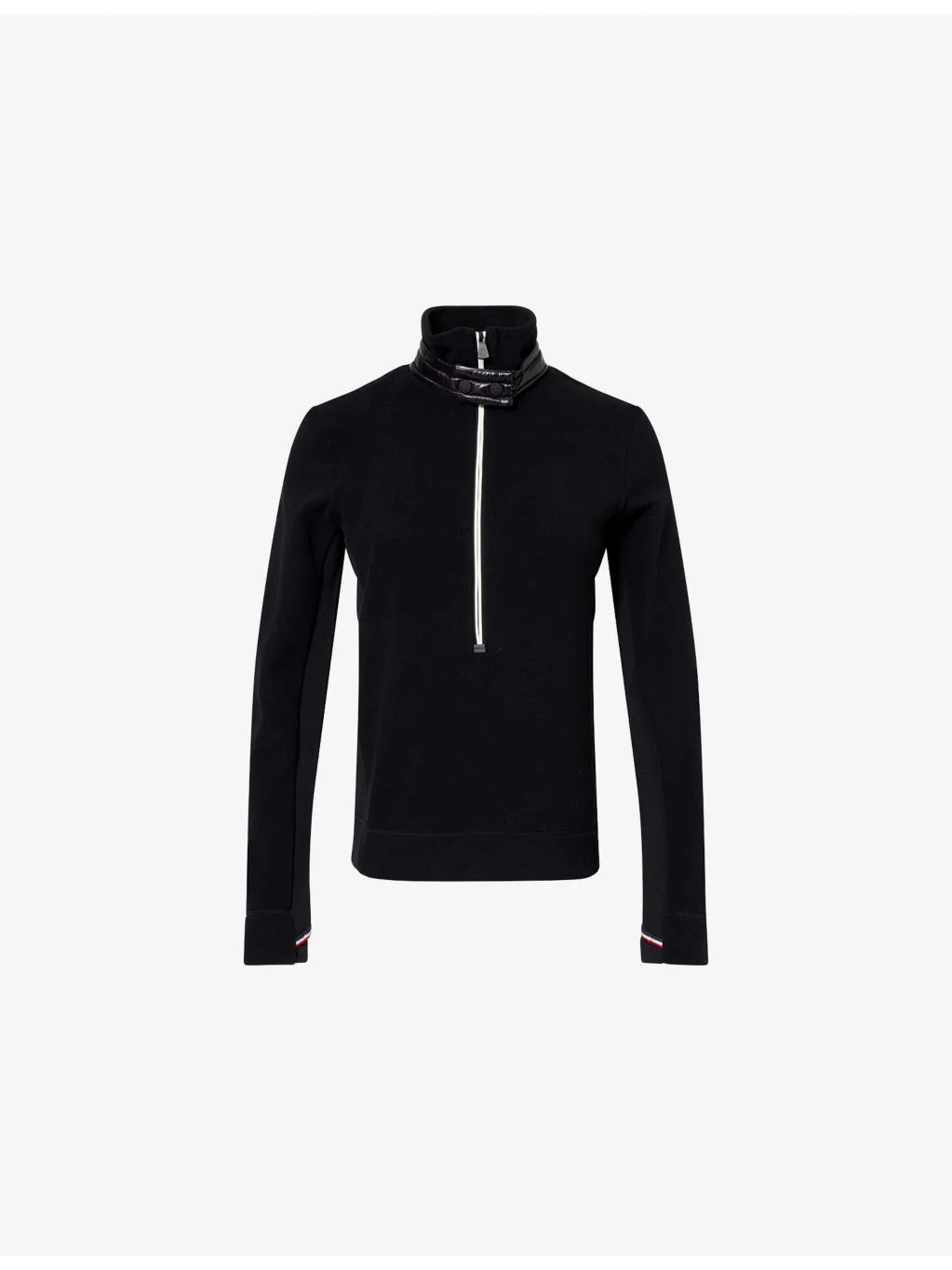 PRODUCT DETAILS - Moncler Grenoble stretch-fleece sweatshirt - 93% polyester, 7% elastane - Exposed snap and concealed zip fastenings at front - Regular fit, high-neck, long sleeves, logo patch at sleeve, thumbholes - Machine wash at 30°C - Made in Italy - True to size - Model is 5ft 10in/1.78m and wears a size small - Lightweight, stretchy Ref: R04553018