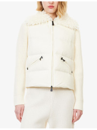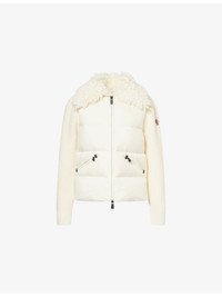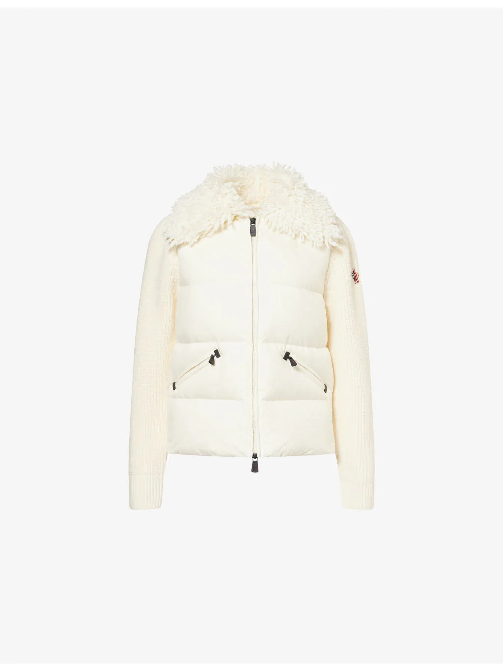 PRODUCT DETAILS - Moncler Grenoble padded cardigan - 100% polyamide; contrast 100% wool - Concealed zip fastening at front - Regular fit, spread collar, long sleeves, logo patch at sleeve, zip pockets at front, padded at front - Dry clean - Made in Romania - True to size - Size small: length 21.5in / 55cm - Model is 5ft 10in/1.78m and wears a size small - Midweight, slight stretch Ref: R04553025