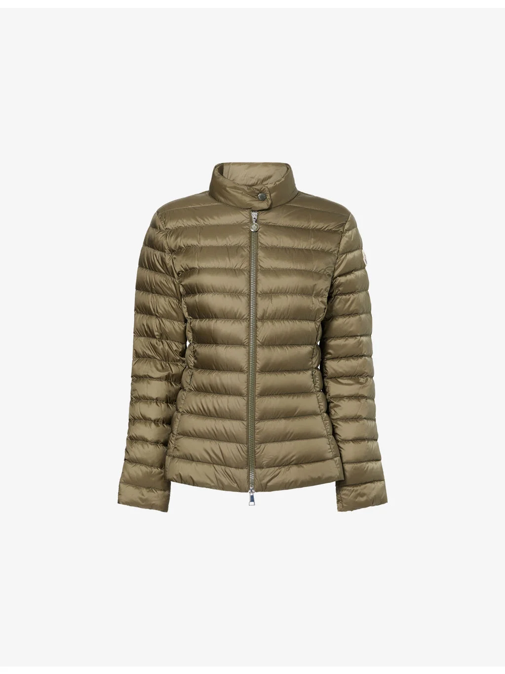 PRODUCT DETAILS - Moncler shell-down jacket - 100% polyamide; filling 90% down, 10% feathers; lining 100% polyamide - Exposed zip fastening at front - Slim fit, funnel neck, long sleeves, two side zip pockets, cinched waist, brand badge at sleeve, branded hardware, all-over quilted design, water-resistant - Hand wash - Made in Armenia - True to size - Size small: length 23in / 59cm - Model is 5ft 10in/1.78m and wears a size small - Lightweight, non-stretch Ref: R04569332