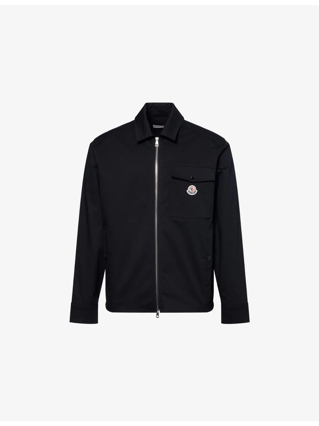 PRODUCT DETAILS - Moncler cotton overshirt - 98% cotton, 2% elastane - Zip fastening - Regular fit, classic collar, long sleeves, pocket and brand patch at chest, two welt pockets at front, branded hardware, unlined - Machine wash at 30°C - Made in Romania - Size medium: length 29in / 73.5cm, chest 46in / 116.5cm - Model is 6ft 2in/1.88m and wears a size medium - Midweight, non-stretch Ref: R04564649