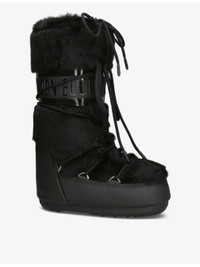 PRODUCT DETAILS - Moon Boot faux-fur snow boots - 57% modacrylic, 30% PVC, 13% polyester; lining 100% polyester; sole 100% rubber; upper 100% nylon - Slips on - Round toe, ankle height, lace-up adjusters at front, anatomical heel, heat insulating sole, thermal jersey padding - Wipe with a clean, dry cloth - Upper: 100% faux fur - Lining: 100% synthetic - Sole: 100% rubber Ref: R04373965