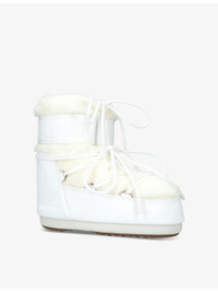 PRODUCT DETAILS - Moon Boot faux-fur and leather snow boots - 49% modacrylic, 40% PVC, 11% polyester - Slips on - Ankle rise, round closed toe, logo embossed at side, debossed logo at heel, silver-toned metal eyelets, criss-cross tubular laces - Wipe with a clean, dry cloth - Upper: 100% faux fur - Lining: 100% synthetic - Sole: 100% rubber Ref: R04373964