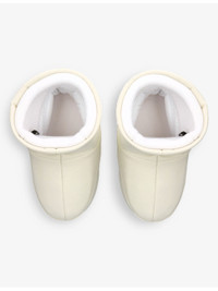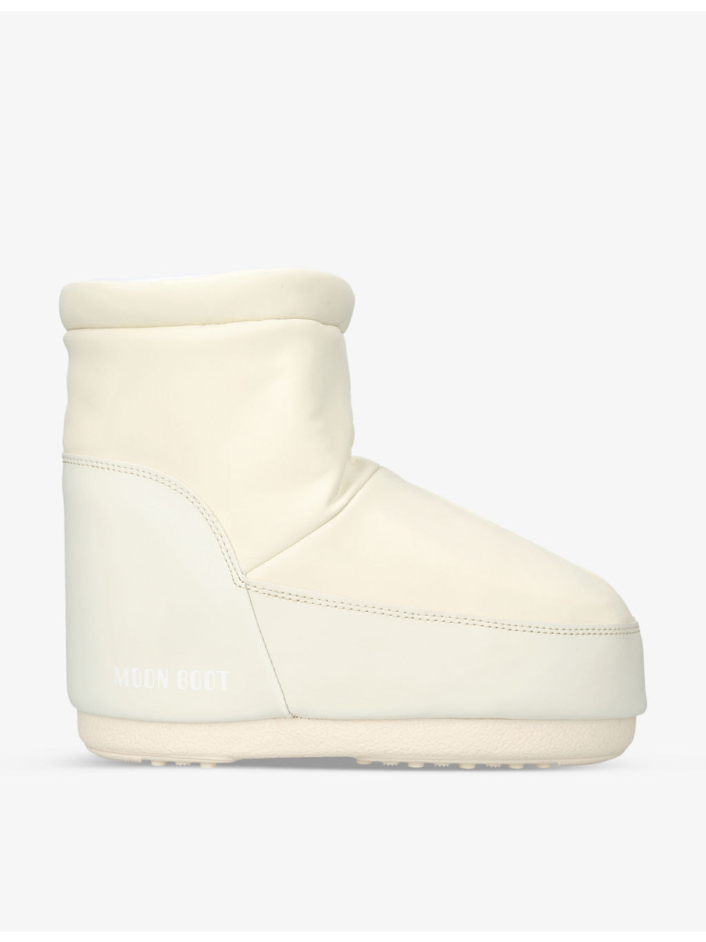 PRODUCT DETAILS - Moon Boot water-repellent boots - 49% polyester, 35% PVC, 16% polyurethane - Slips on - Round closed toe, tread sole, logo print at heel counter and trim, water repellent - Wipe with a clean, dry cloth - Upper: 49% polyester, 35% PVC, 16% polyurethane - Lining: 92% polyester, 8% polyurethane - Sole: 100% rubber