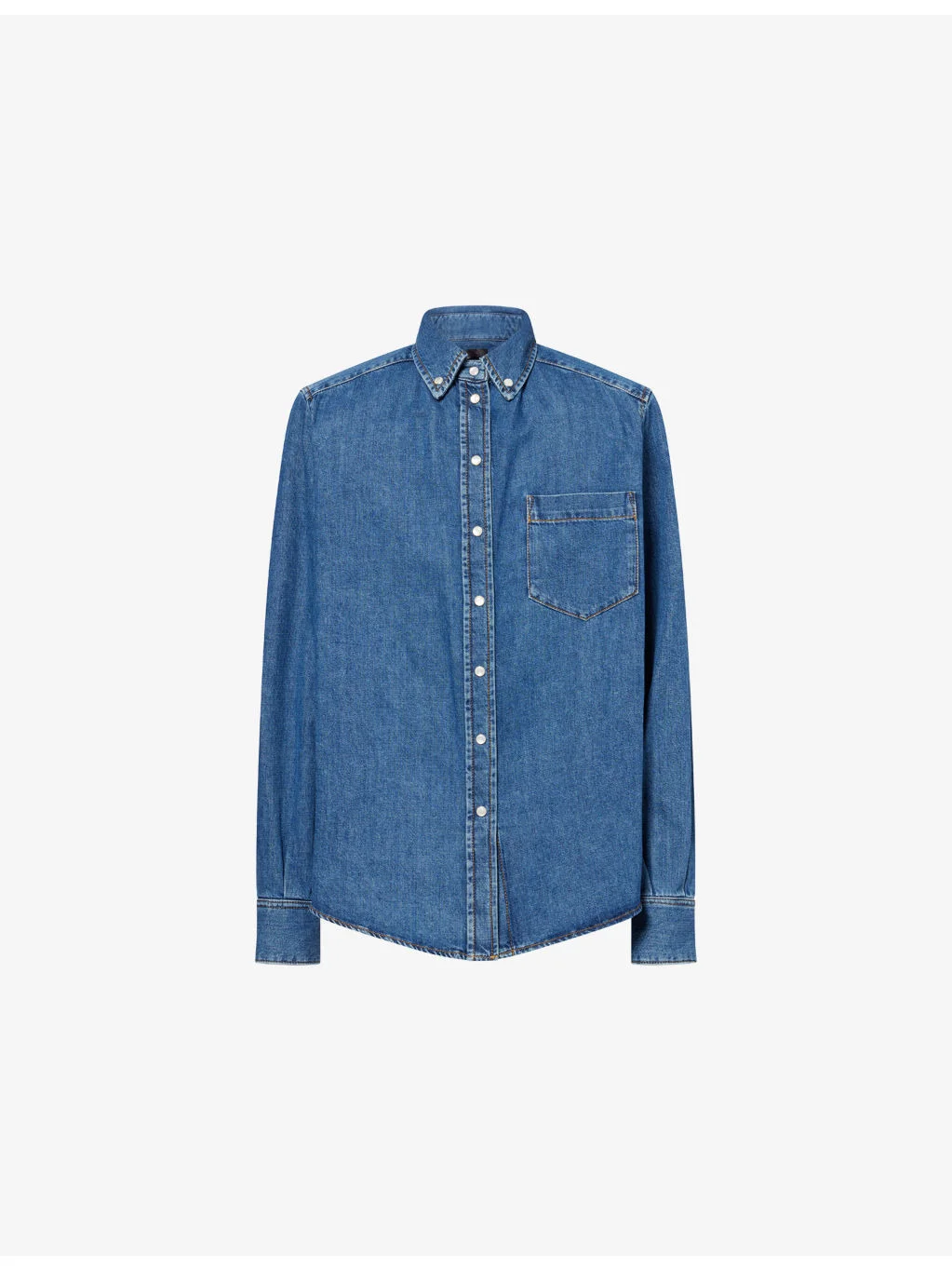 Boxy-Fit Padded-Shoulders Denim Shirt