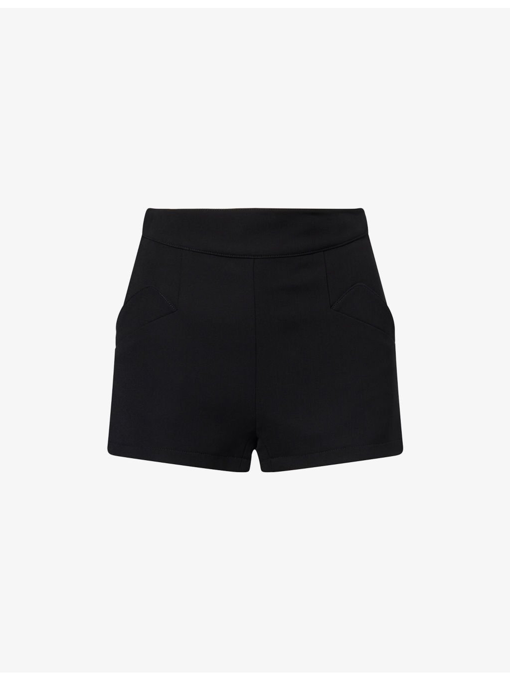 PRODUCT DETAILS - Mugler woven shorts - 78% viscose, 22% virgin wool; lining 100% cupro - Exposed button and concealed zip-fly fastening at back - Regular fit, high-rise, two slip pockets at front, darts at front and back, fully lined - Dry clean - Made in Ukraine - True to size - Size UK 8: rise 15in / 38cm, inside leg 1.5in / 3.5cm, leg opening 22in / 56cm - Model is 5ft 10in/1.78m and wears a size UK 8 - Lightweight, stretchy Ref: R04535281